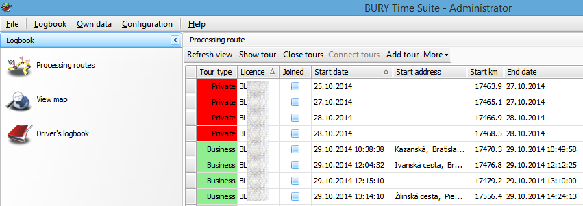 | voľbu druhu jazdy: | súkromná jazda (bez záznamu GPS polohy vozidla), jazda do práce a obchodnou cestou |